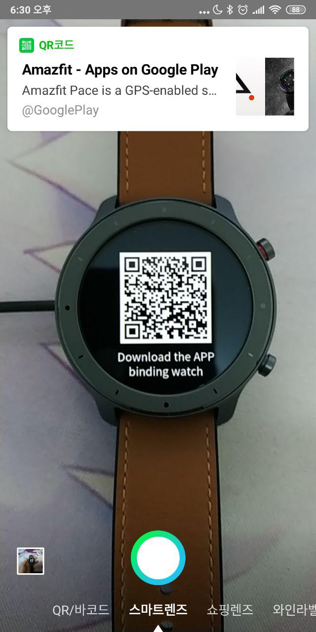 QR코드가 떡하니 나옵니다. 스마트폰으로 링크로 들어가 Amazfit 어플을 깔아줘야 사용이 가능합니다.